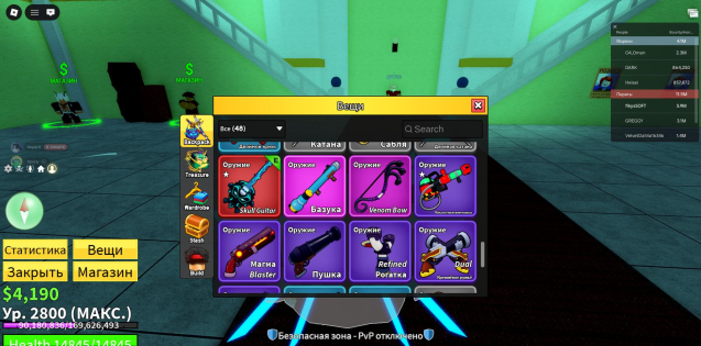 геймпассы: 2x store, 2x masteri, 2x money, dark blade
