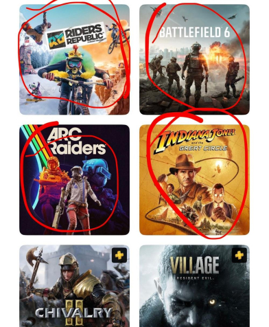 ⭐️Все обведённые игры на фото — игры, которые я покупал за свои деньги + fifa 26. Игры с плюсиками это игры из подписки