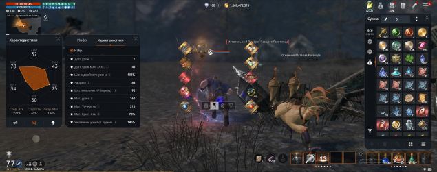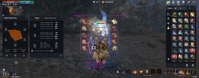 ℹ️ Другие Характеристики: Крит. Атк. 103%, Шанс Двойного Урона 105%, Шанс Тройного Урона 13%, Блокировка Оружия 50%, Увеличение Урона от Оружия 145%, Увеличение Урона от Умений 156%, Сопротивление Оглушению 16%, Шанс оглушения 29%