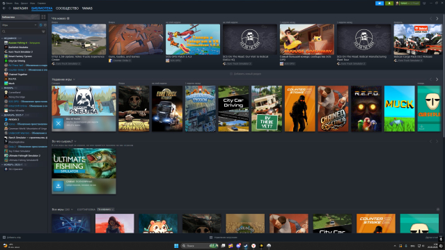 на стиме есть такие игры как етс2, икасрус, репо, фазмафобия, пейдей2, ультимейт фишинг 2 части, чайнед тогезер,rv yet there,911 оператор, сити кар дравинг, бакшот ролете, ранч симулятор и игры дешевые .3 лвл стима