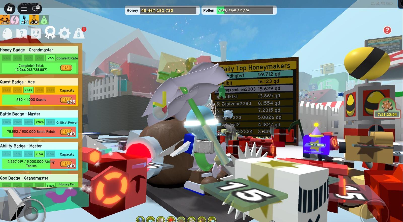 топовый аккаунт с 50 пчелами в красной пыльце есть суприм стар амулет с пассиквкой под красную пыльцу также выполнено 10 квестов от разных нпс бисмаса есть петал палка и петал ремень