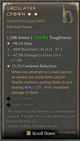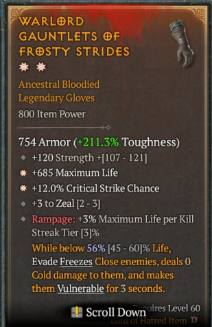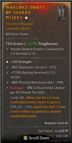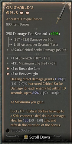 ✅Почти во всех легендарных предметах нужно дороллить четвертый нужный стат.
