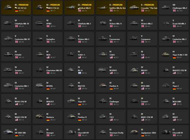 VII - 1, VI - 5, V - 6 KW II 754 (r), Challenger Mk.2, Chieftain Mk 10, VFM5, Chieftain Mk 3, Vickers Mk.11