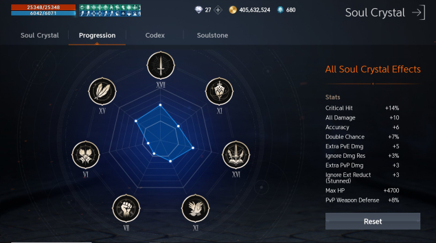 Заряд души 7-3, атака 7-0, хранитель 6-3, завоевание 6-3, дуэль 6-1, энергия 6-1, самоконтроль 5-3, воля 5-1, терпимость 5-1, вдохновение 3-3.