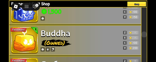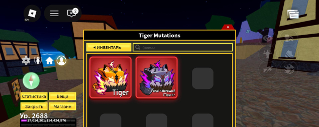 на аккаунте имеется permanent Kitsune и permanent Budha, из донатного оружии есть Dark blade, и еще имеется мутация на Обротня.