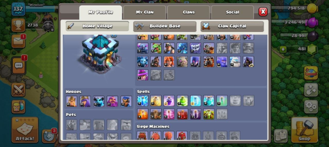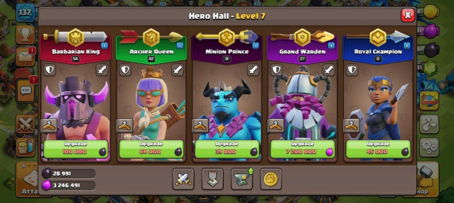 Уровень Ратуши: 13Краткое описание: 🟪 ✨ 𝟏𝟑 ТХ ✨ 🟪 ГЕРОИ【𝟓𝟒:𝟒𝟐:𝟑𝟏:𝟐𝟕:𝟖】+ ⭐ 𝟏𝟑𝟕 ЛВЛ ⭐ 🟪 РОЯЛЬ 𝟔𝗞🏆 + БС 𝟐𝟎𝗞🏆 🟪