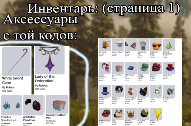 Очень редкий и другие аксессуары с той кодов в инвентаре, также другие различные аксессуары
