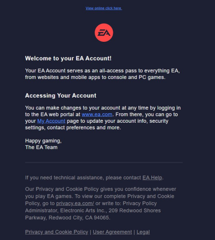 Почта оригинальная с приветственным письмом от EA (см скриншоты)