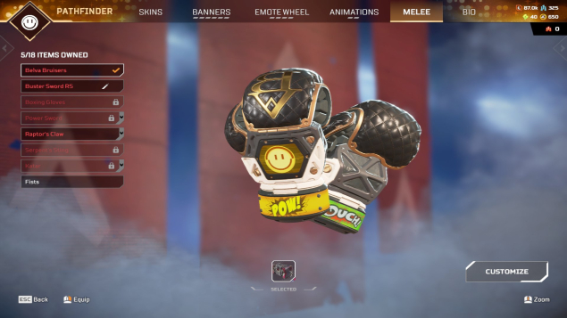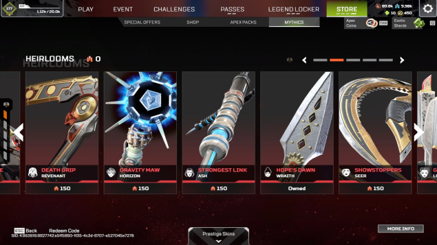 6 реликвий: Реколор рейф, реколор бангалор, керамбит, R-301, Buster Sword (меч Final Fantasy), реколор патфайндер