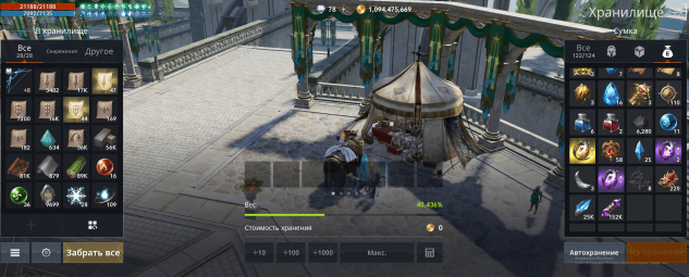 🧰 Пожитки: 47 Благ. Точек Оружия, 44 Благ. Точек Брони, 10 кк орденов славы, 2 красных чернил, 6 синих чернил, 14/50 эликсиров скрафчено, 576 часов ЛОА, 403 часов замка, 24кк знаков поручения, +7 Кинжал Демона Божества (привяз.) (Святость +3)