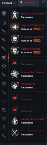 Красные скиллы — все, кроме «Двойное парирование», «Феникс», «Танцевальное сальто»