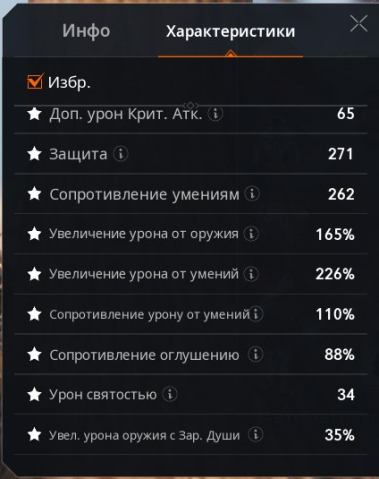 Другие Характеристики: Сопротивление оглушению 88%, Сопротивление умениям 262, Блокировка Оружия 60%, Увеличение Урона от Оружия 165%, Увеличение Урона от Умений 226%