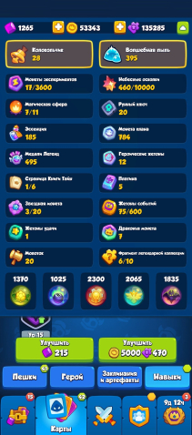 Краткое описание: 1530% Крит, 15 монах, мечи, дриада, арлекин, призыватель, почти 15 джинПодробное описание: 1530% Крит, 15 монах, мечи, дриада, арлекин, призыватель, почти 15 джин, много карт для прокачки саппортов