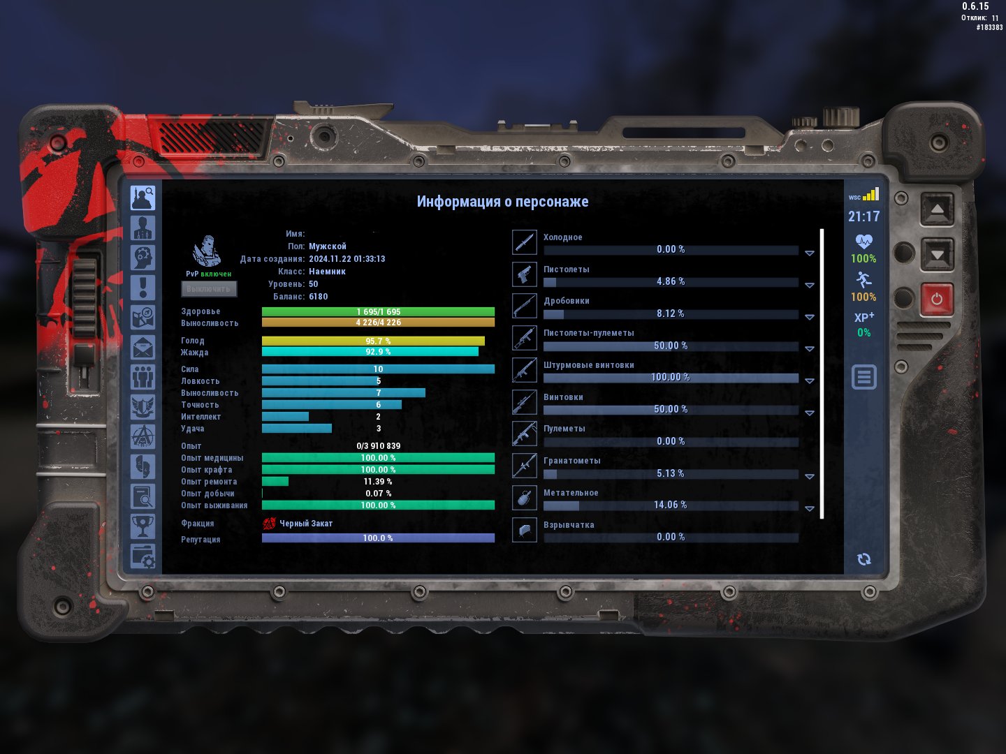 старала 50лвл: дб100%, пп100%, опыт ремонта 100%, опыт добычи 35%