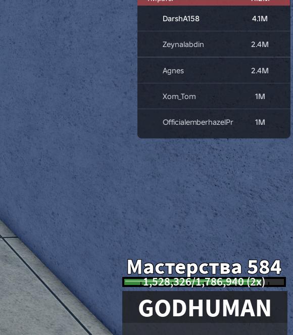 Игровые пропуски (Gamepasses): 2x Mastery (прокачка стилей и оружия в два раза быстрее).