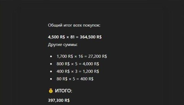 💎 Тотал (всего задонено Robux): 400 000+ — огромная история покупок