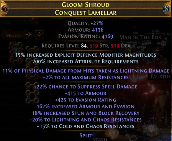 Броня на 4к брони и уворота, 6линк. Скрины в описании, Доспехи