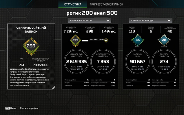 Подробное описание: Много скинов с событий, аккаунт с 3 сезона, на все оружия есть легендарные скины, на большинство персонажей лег скин рамка и эпик поза, есть эмблемы за 4к урона и 20 киллов. Куплено и пройдено полностью 2 бп