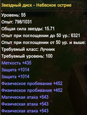 Диск 55 уровня: 15.71 сила звезды, приятные статы: дабл физатк, дабл физ пробив итд.