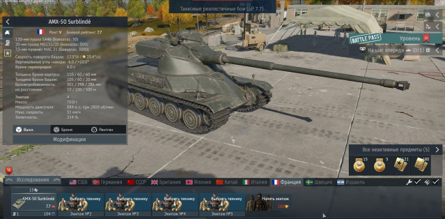 Краткое описание: 💰 70 премов (20 топ-ранга) | 🏆 AMX-50 Surblindé | 👑 Топ сетапы СССР и США | 🛩️ >1000