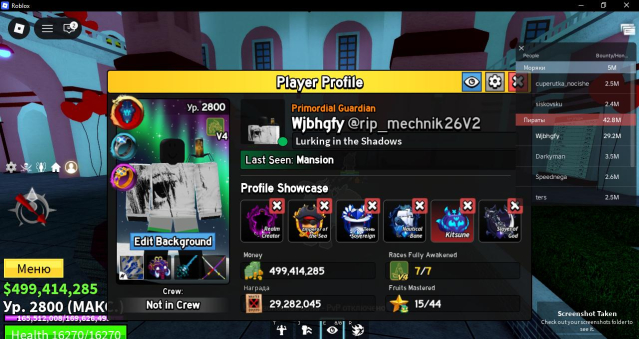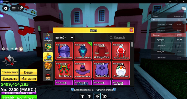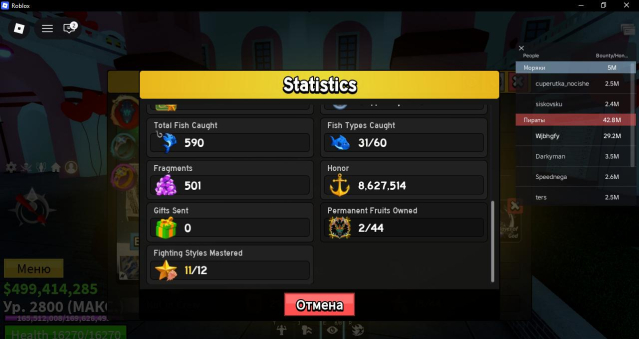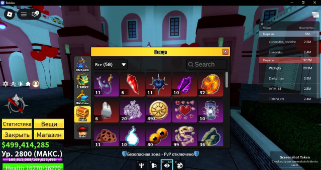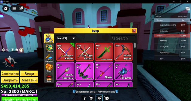 на акке много мечей на зачарах стронг грип и 2 пушки, 30м за пиратов и 8.7 за марин, многие фрукты, стили, мечи, пушки прокачены на 600 мастери. куча аур для рип индры. так же есть пару гп дб, х2 мастери, х2 мани, быстрые лодки. все фулл расы в4 и главное 500м белли