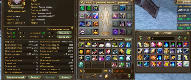 Подробное описание: Шаман со всеми бонусами за 103 лвл, 3 рай, 3 небо равенства