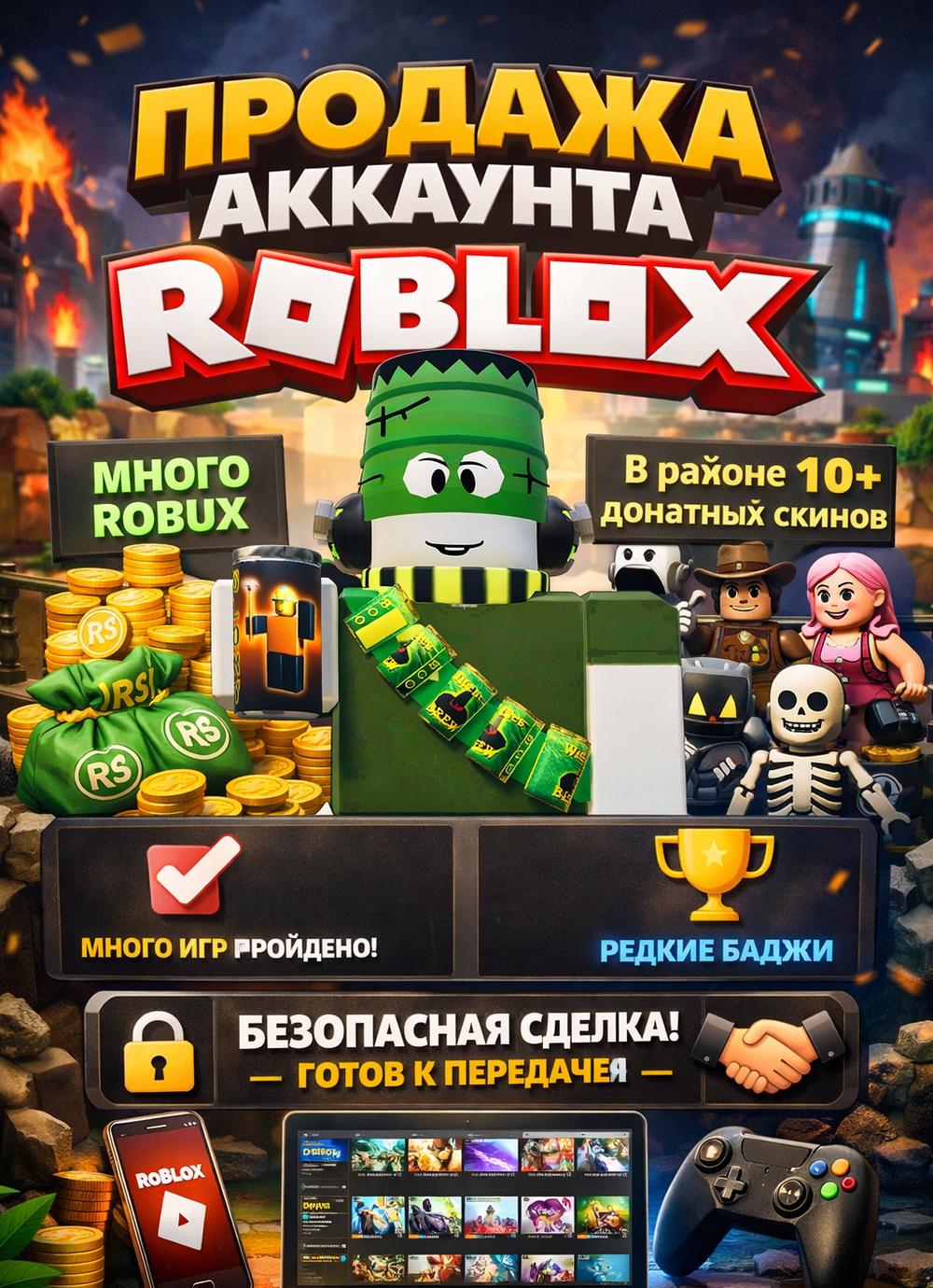 На аккаунте было задоначено 1000+ робуксов, так же аккаунт прокачан в играх ниже
