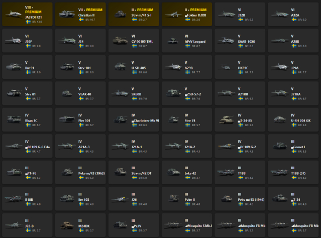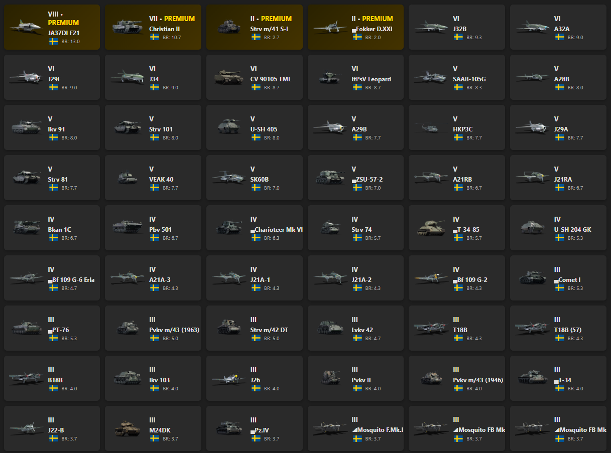 VIII - 1, VII - 1 JA37DI F21, Christian II, Strv m/41 S-I, Fokker D.XXI, J32B, A32A, J29F, J34, CV 90105 TML, ItPsV Leopard