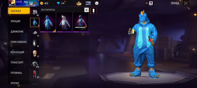 Есть костюм динозавра, и много одежды