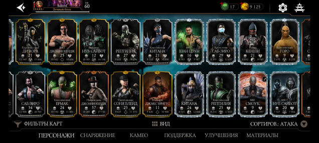 Подробное описание: Продаю аккаунт Mortal kombat mobile💢 с фул 60 уровня аккаунтом👊, много прокачанных золотых и алмазных персонажей🦾, имеются также и редкие снаряжения играл без доната. Возможен торг.💰