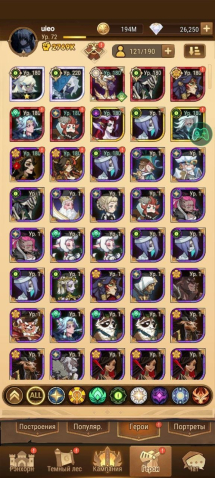 герои которые есть на акаунте вы можете увидеть на скрине