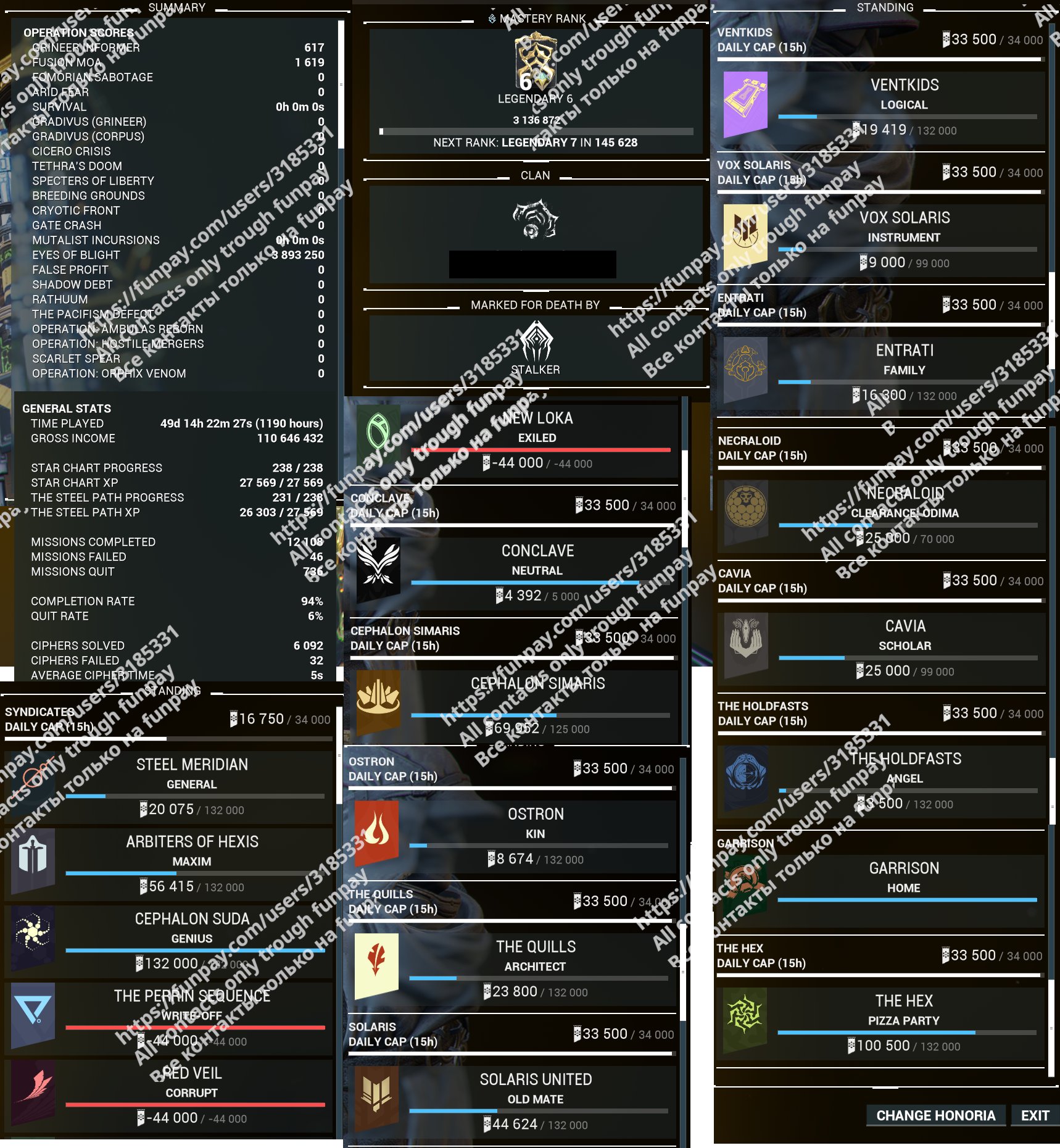 Краткое описание: 6 Легенда. Все доступные прайм фреймы и пухи собраны (экскалибура нет). Регион РФ