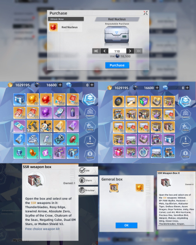 Сервер: (EU) AstoraКраткое описание: 𝗟𝘃𝗹:𝟲|𝗦𝗦𝗥: 174 Red Nucleus+Lana+Nemesis Voidpiercer+Lechesis+2 SSR Box+7 SSR+59 Gold Nucleus+Costume