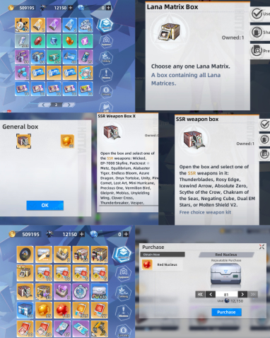 Краткое описание: 𝗟𝘃𝗹:𝟲|𝗦𝗦𝗥: 184 Red Nucleus+Lana(+Matrix Box)+Lechesis+5 SSR+2 SSR Box+55 Gold Nucleus+Costume