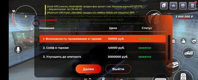 🚀 Гараж с 3 из 3 улучшениями, дает +6 доп слотов для авто. Цена такого гаража околт 8 000 000 рублей 💸