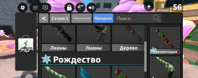 -Предоставлено на скринах(6 ножей~, столько же пистолетов, игрушки, танцы)