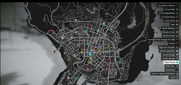 Предприятия (видимые на карте): На аккаунте уже есть ночной клуб, офис генерального директора, лаборатория по переработке кислоты, бункер, ангар, свалка, склад автомобилей, автомойка Kosatka с режимом повышенной сложности и розовый алмаз