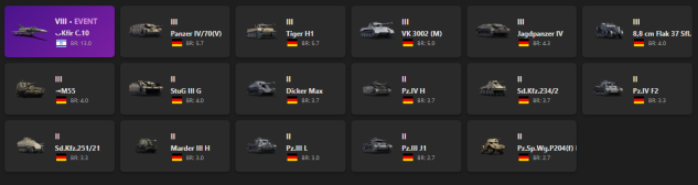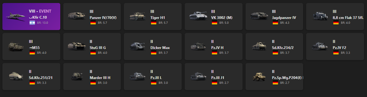 VIII - 1 ◡Kfir C.10, Panzer IV/70(V), Tiger H1, VK 3002 (M), Jagdpanzer IV, 8,8 cm Flak 37 Sfl., ◄M55, StuG III G