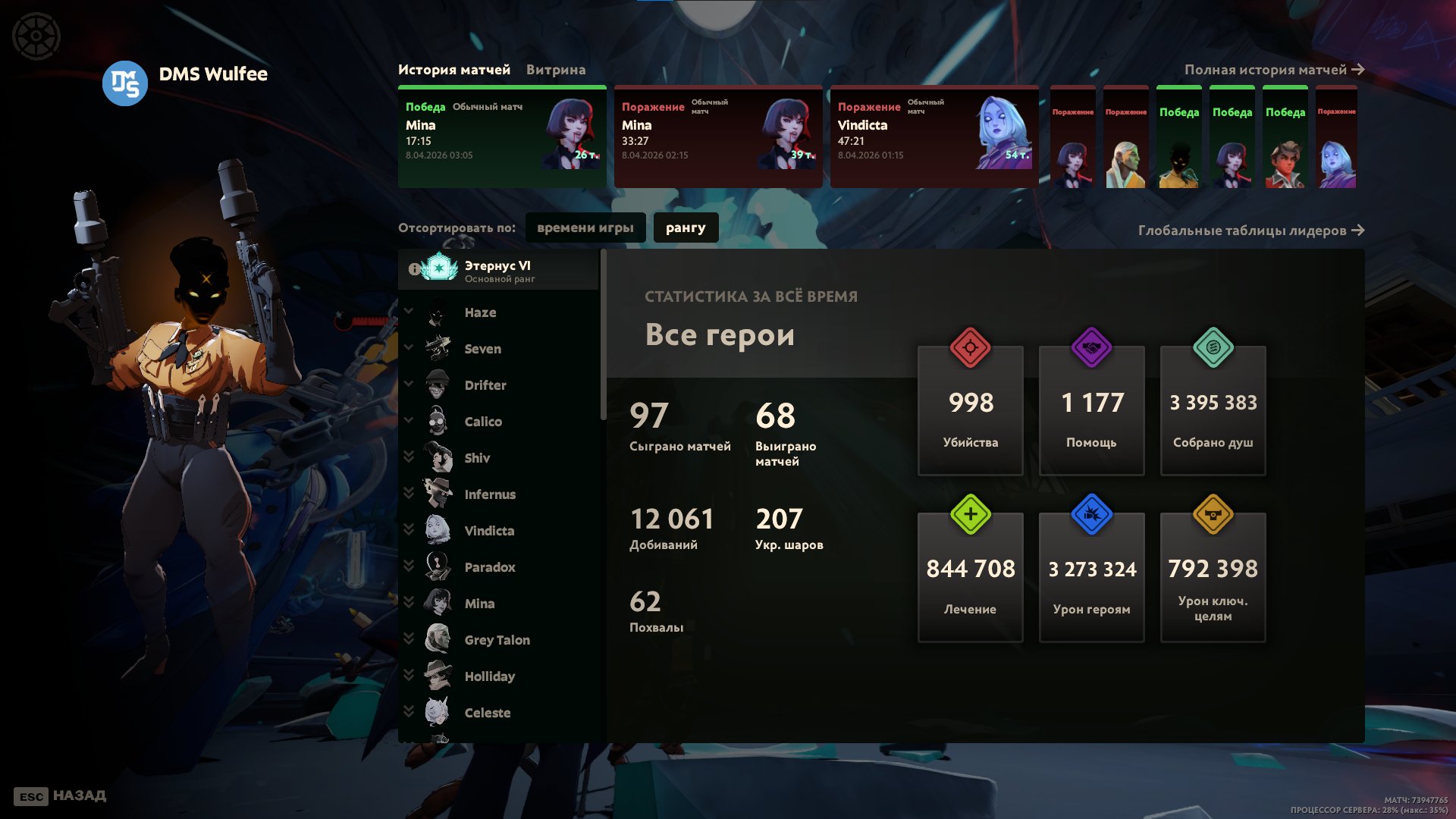 Тип предложения: ПродажаКраткое описание: 🔵 ЭТЕРНУС 6 🍀 NO VAC 🎮 АККАУНТ ПОД МЕЙН 💥 95+ МАТЧЕЙ 💥