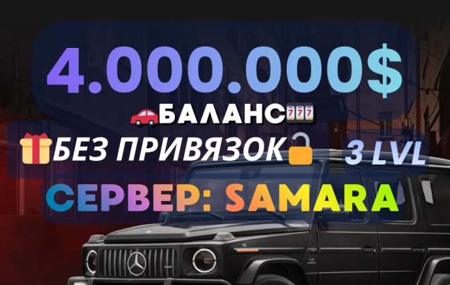 ⚡️ ПОЛНЫЙ ДОСТУП ⚡️ АККАУНТ С 4000000$ БАЛАНС + 3 LVL + VIP ⚡️ SAMARA ⚡️ БЕЗ ПРИВЯЗОК ⚡️ СМОТРИТЕ ОПИСАНИЕ ⚡️Уровень: 3
