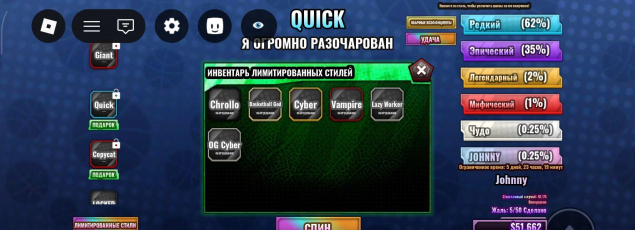 стили-гигант, эйс, чролло, баскетбол бог, кибер, вампир, лейзи воркер,OG кибер