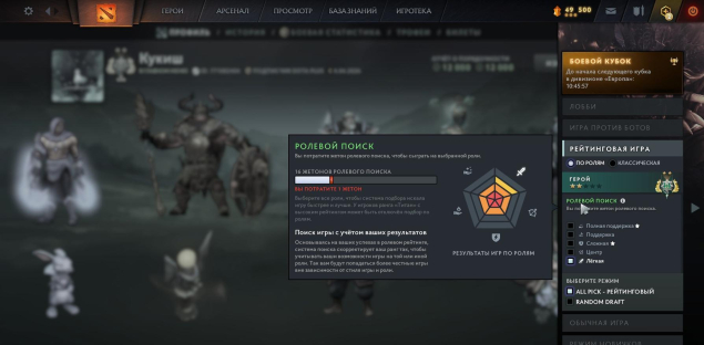 • На аккаунте имеется 16 жетонов РОЛЕВОГО ПОИСКА.