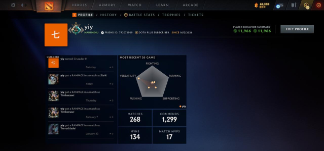 ⚡️ ПОЛНЫЙ ДОСТУП ⚡️ 1460 MMR — Guardian — Быстрый поиск(Мейнпулл) — 11966 порядочность ⚡️ СМОТРИТЕ ОПИСАНИЕ ⚡️Доступен рейтинг: ✅
