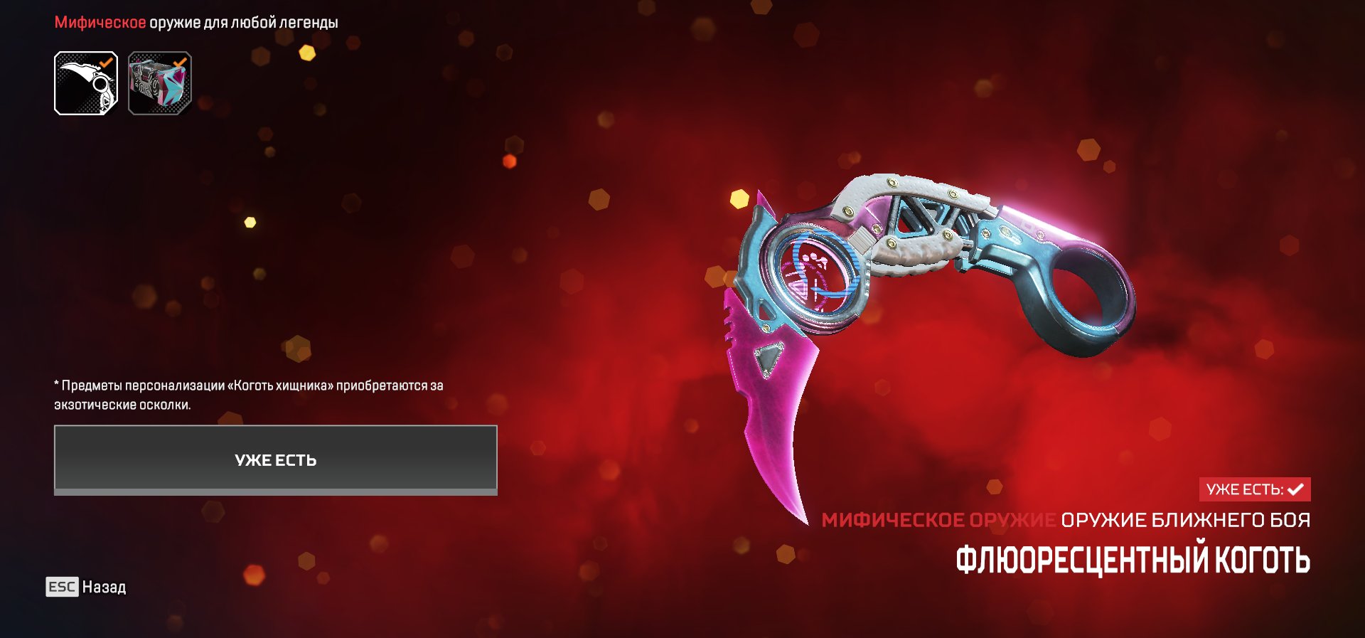 🩸На аккаунте есть 965 легендарных скинов, коготь хищника + реколоры, катар + реколор, укус змея + реколор, силовые мечи +реколоры, 11 реликвий куплены и пройдены почти все бп, так же два престижных скина купленных за осколки, мифическая r301, почти все реактивные скины.🩸