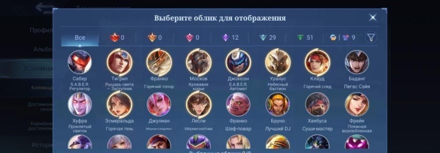 Аккаунт Mlbb с 101 обликами и 60 героями
