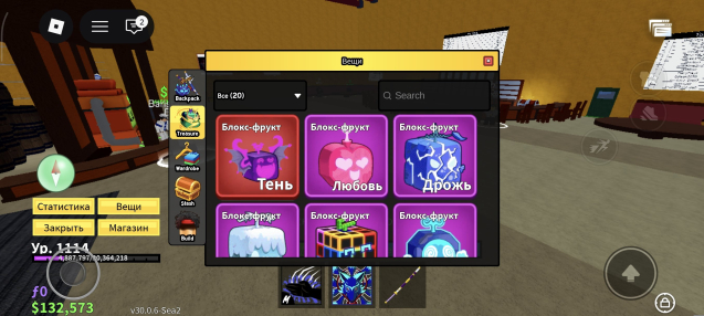 Подробное описание: В блоке фрукте есть китсуни и тгд много вещей красивый бант и тгд много донатнтх скинов эмоции и тгд