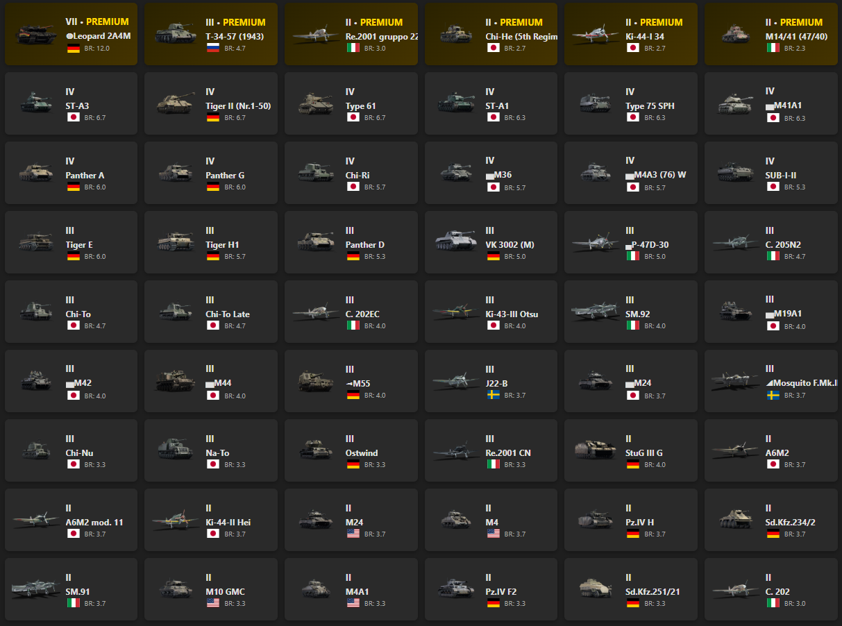 VII - 1 ◍Leopard 2A4M, T-34-57 (1943), Re.2001 gruppo 22, Chi-He (5th Regiment), Ki-44-I 34, M14/41 (47/40), ST-A3