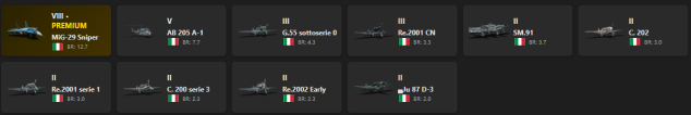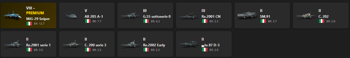 VIII - 1 MiG-29 Sniper, AB 205 A-1, G.55 sottoserie 0, Re.2001 CN, SM.91, C. 202, Re.2001 serie 1, C. 200 serie 3