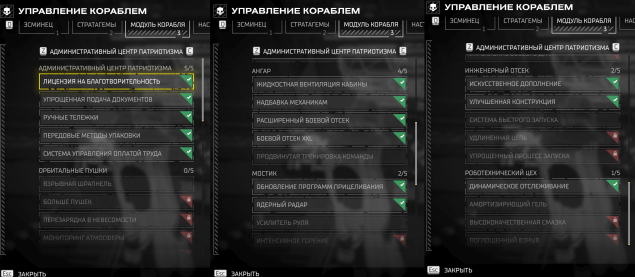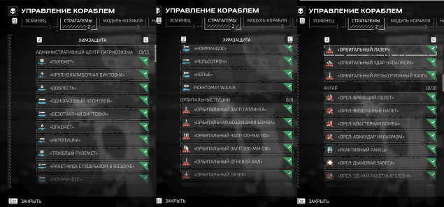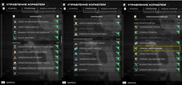 📌 Открыты все стандартные стратагемы корабля