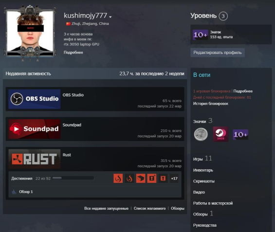 Уровень Steam: 3